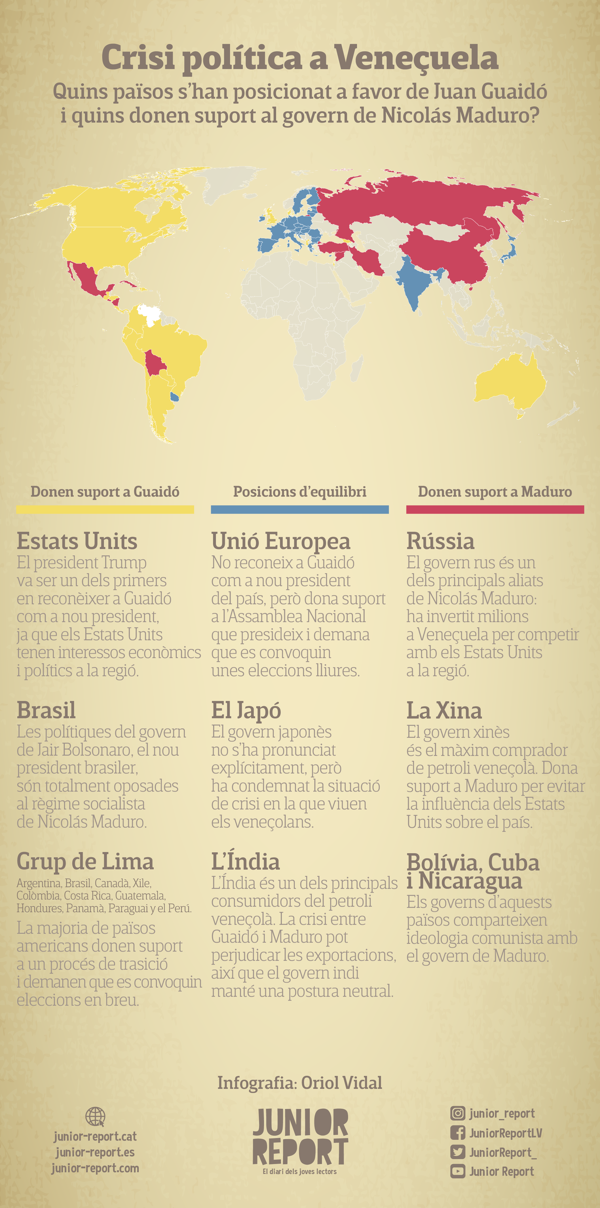 Per la seva banda, el president veneçolà Nicolás Maduro ha rebut el suport de països com Rússia, la Xina o Cuba: què tenen aquests països en comú? Et mostrem els interessos de la comunitat internacional en la crisi política de Veneçuela.