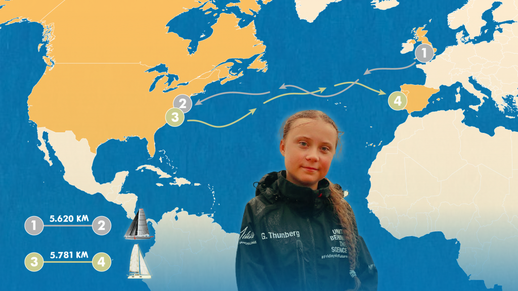 L'activista pel clima Greta Thunberg ha creuat dues vegades l'oceà Atlàntic a bord de vaixells que no emeten gasos d'efecte hivernacle. (Junior Report)