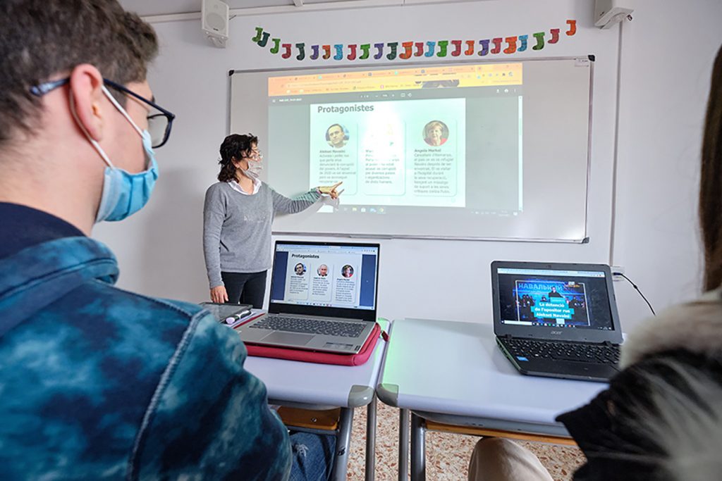 Alumnes de l'Escola GEM de Mataró fent servir La Notícia del Dia a l'aula. (Junior Report)