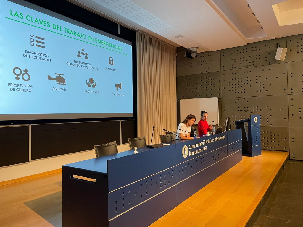 Elisa Bernal, especialista en comunicació d’emergències, va presentar a tot l’equip i va exposar la seva feina tant abans, durant i després del conflicte, aclarint que no sols s’actua durant l’emergència sinó que resulta un procés molt més complex.