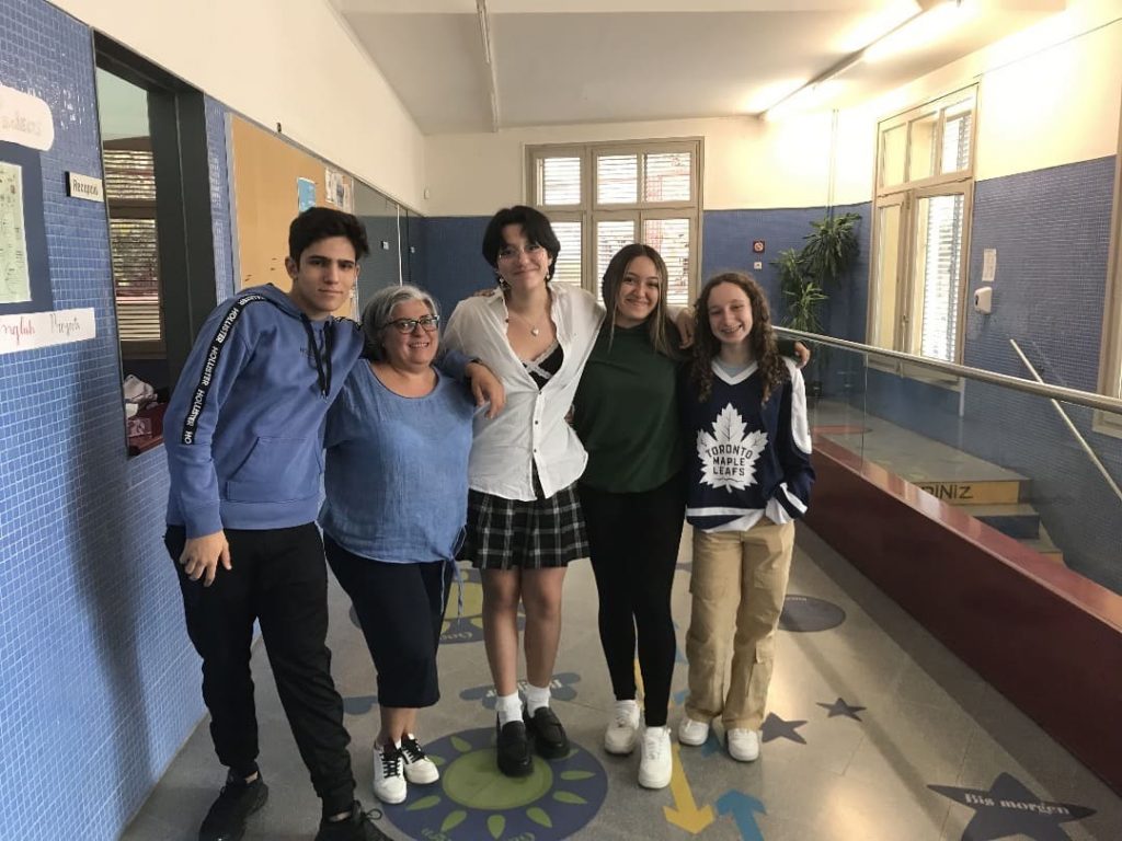 Mercè Fernández amb alumnes de 4t d'ESO. (IE Londres)