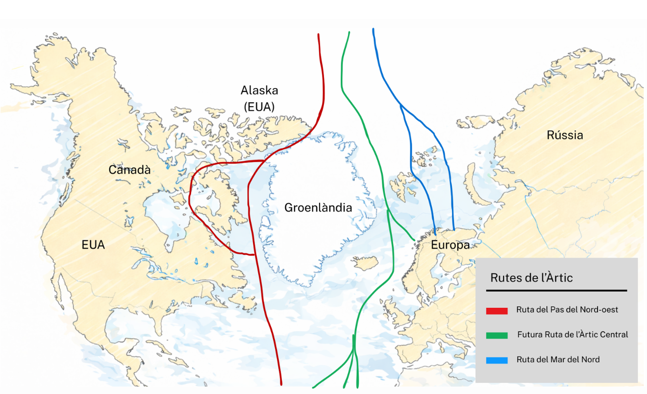 Així mateix, el canvi climàtic que el mateix Trump qualifica d’“estafa”, està descobrint noves rutes comercials que abans estaven congelades. Per al 2035, l’Organització Mundial del Comerç preveu que la Ruta del Mar del Nord, propera a Rússia, creixi molt més que la Ruta del pas del Nord-oest, propera al Canadà i als Estats Units.